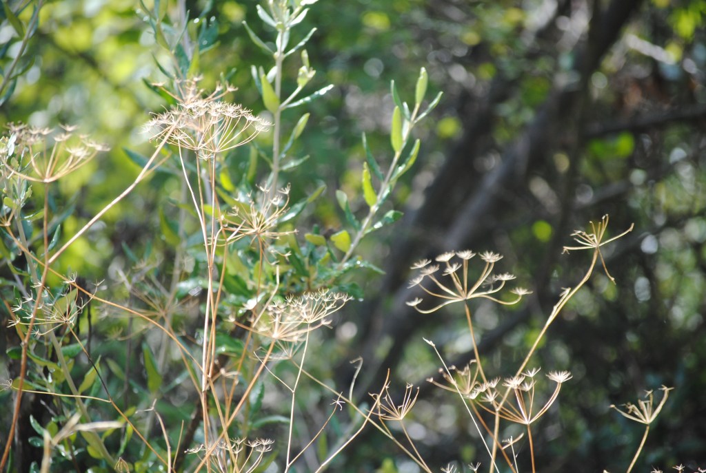 The figs are ripe on some trees, not on others. The ones that are ripe dribble sticky juice on to your hand.
