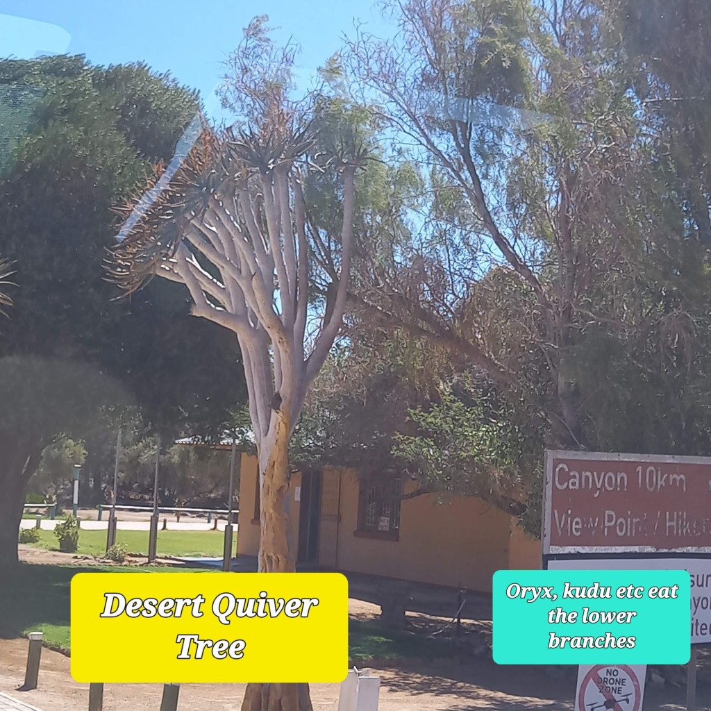 We stopped at a little outpost of Fish River Canyon and saw one of many Quiver trees we would see from now on. The San people used to hollow out the trunk and use them for quivers for their arrows, hence the name.