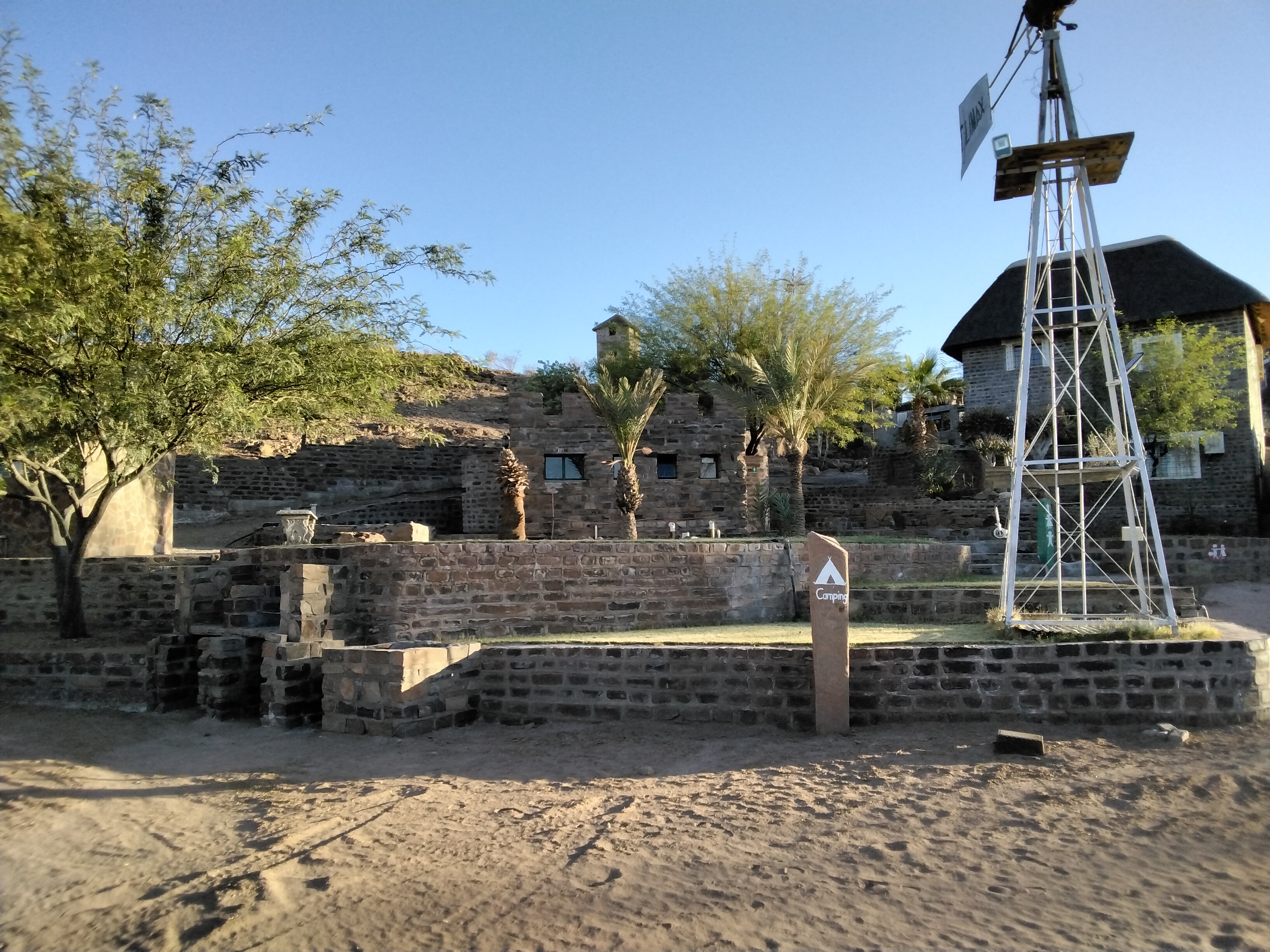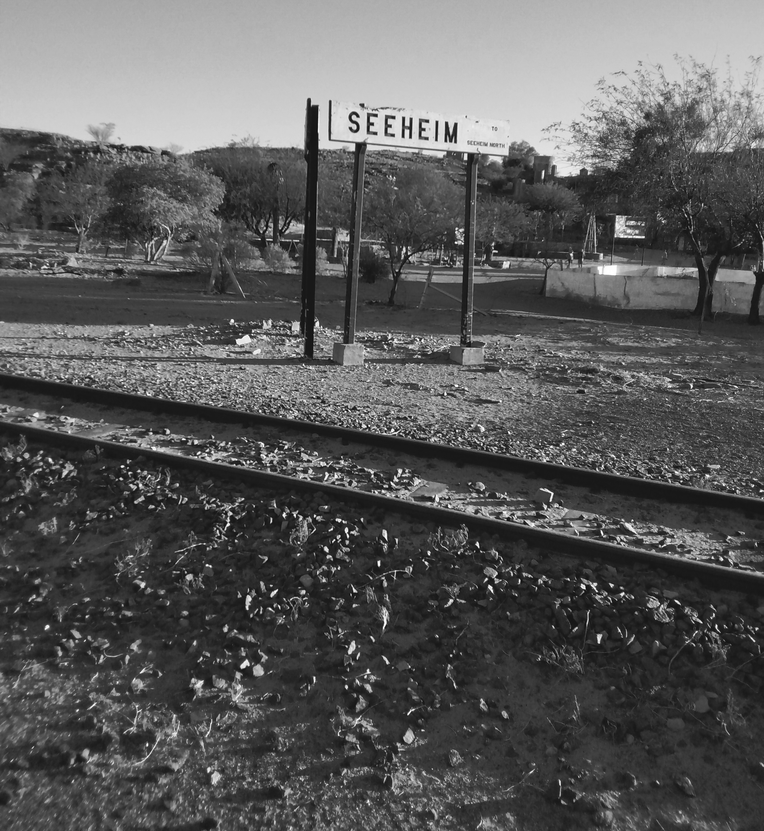 We drove on to our next accommodation, in an outpost known as Seeheim. I use the word outpost advisedly, as it is in the middle of a junction that no longer exists. Train tracks run through this desolate place, but it has been many years since the sound of a locomotive has been heard. Now, you can listen to the creaking of the abandoned wind generator as it turns lazily in the breeze.