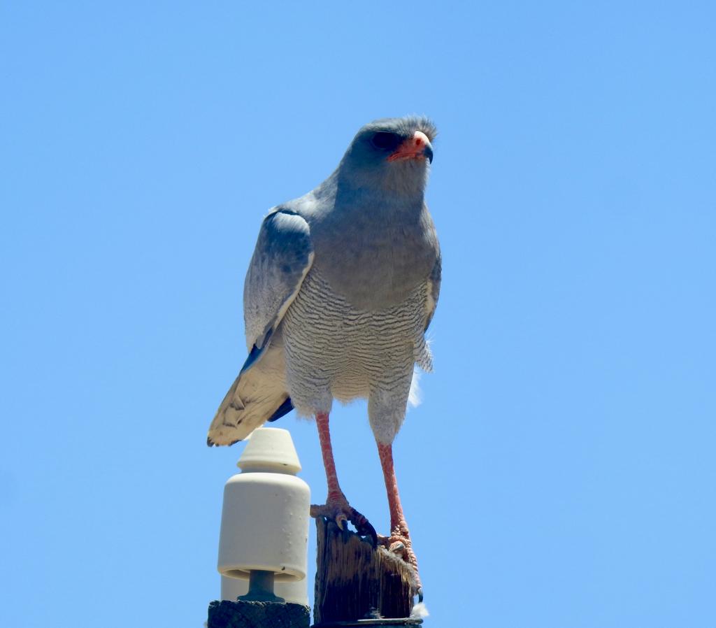 On the road to our destination, we spotted a Pale Chanting Goshawk, doing what the bird book said he does – sitting on top of a telegraph pole.Ostriches were seen along the edge of the road.