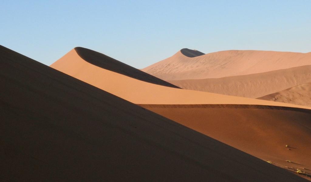 The Sossusvlei is an area of extraordinary beauty – red dunes blown in strange shapes by the constant wind.